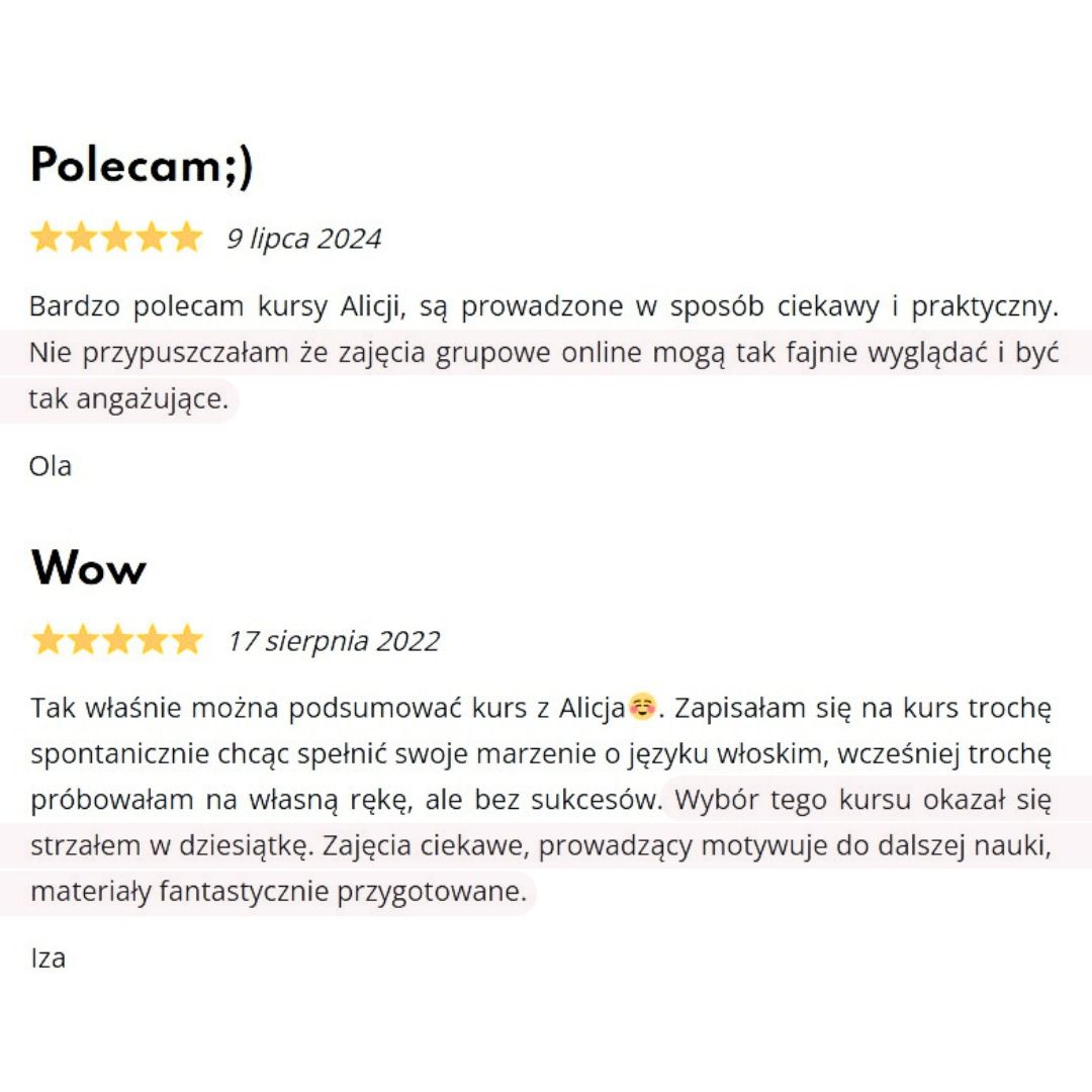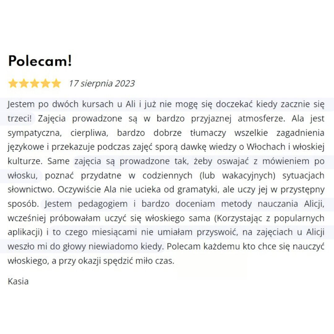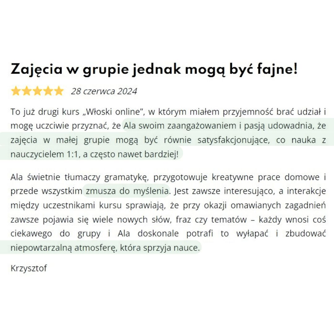 Jeśli masz jakiekolwiek pytania lub wątpliwości, nie wahaj się napisać do mnie na maila! kontakt@wloskionline.pl