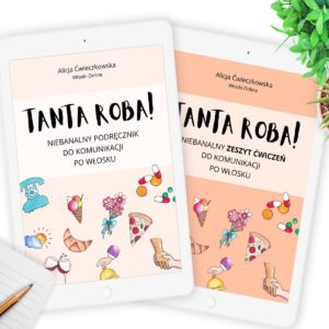 Jeśli obawiasz się, że prezent nie dotrze na czas, nie masz możliwości podarowania książki fizycznie lub po prostu szukasz materiałów, które wychodzą poza schematy, proponuję Ci niebanalne e-booki do języka włoskiego mojego własnego autorstwa. Tanta roba! to superrozbudowane rozmówki, z których można nauczyć się prawdziwego, naturalnego języka i typowych zwrotów, jakimi posługują się na co dzień rodowici Włosi. To również duża dawka informacji kulturowych dnia codziennego, rodzaj kulturowego przewodnika. Możesz przekonać się na własne oczy i bez ryzyka, że jest to pozycja przydatna w życiu, pobierając zupełnie za darmo cały rozdział podręcznika i ćwiczeń.